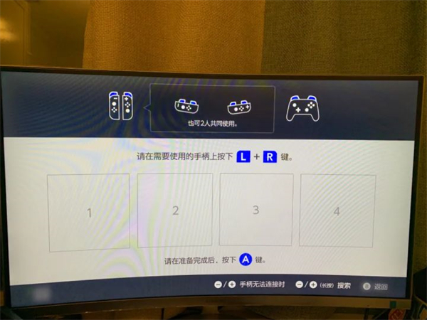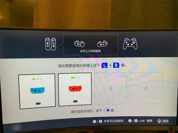 4、然后按下其中一个手柄的“SL+SR”键,对另一个手柄重复以上操作。