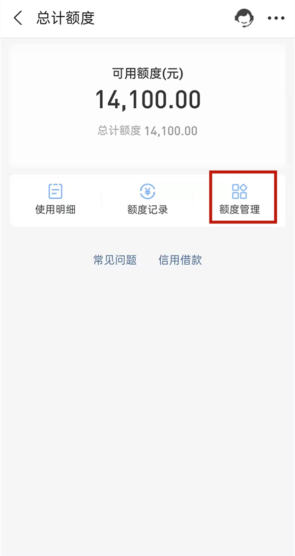 3、点击额度管理。