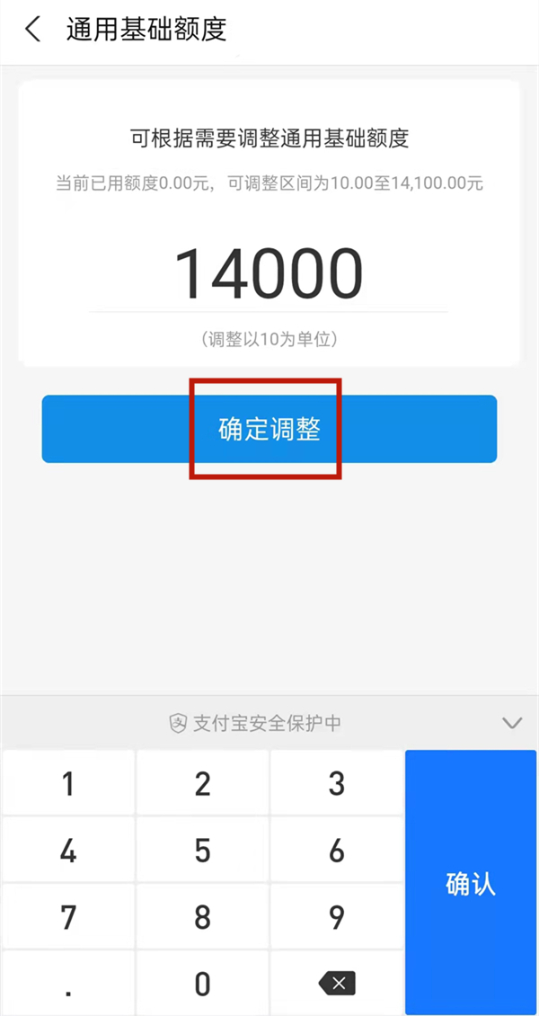 4、在额度管理页面点击调整后,调整为需要的额度即可。