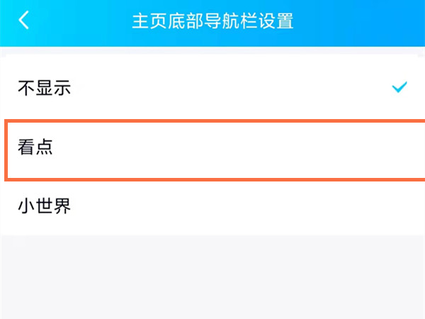 因为设置了主页底部导航栏,将小世界切换成qq看点需要在主页底部导航栏设置中操作。具体操作步骤如下: