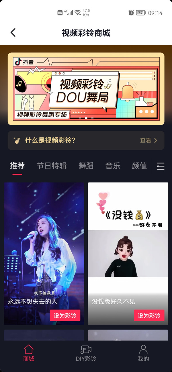 抖音来电铃声不支持设置,可以开通手机来电视频铃声。开通手机来电视频铃声具体操作步骤如下: