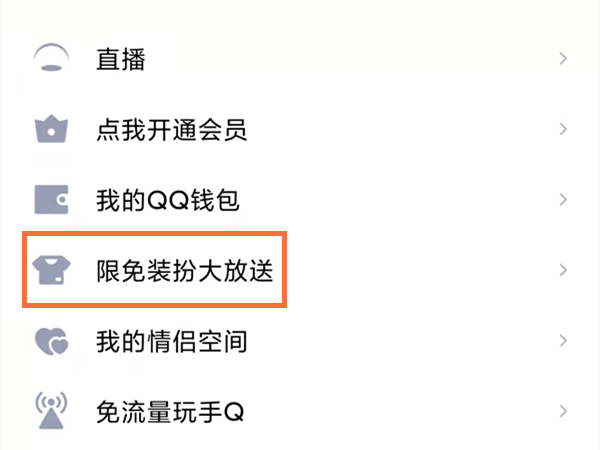 1、打开手机QQ,点击左上角头像,再点击限免装扮大放送。