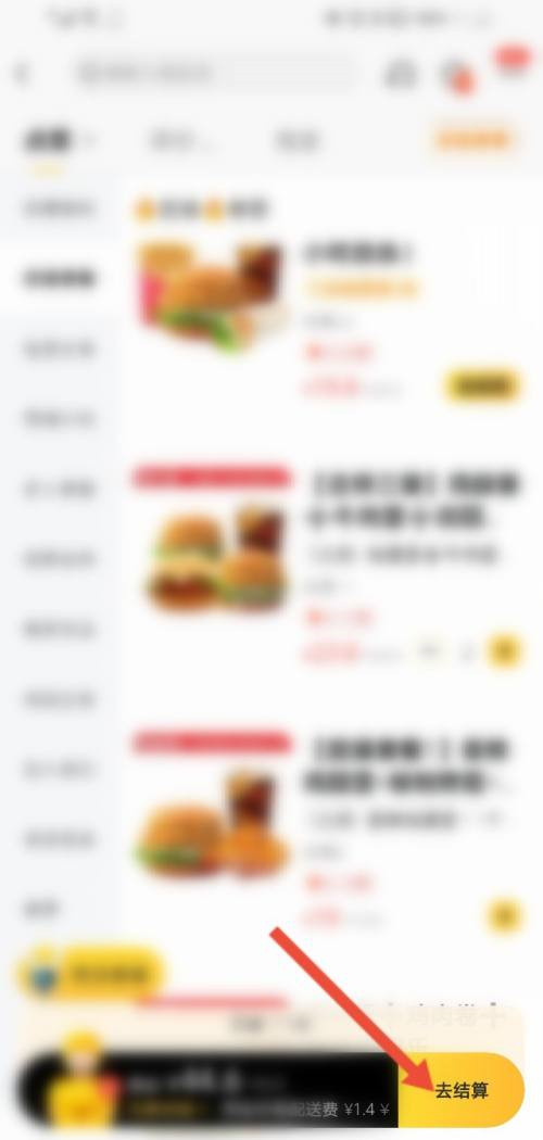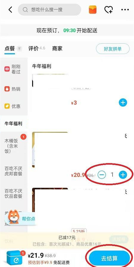 2、选择需要购买的外卖套餐,点击【去结算】。