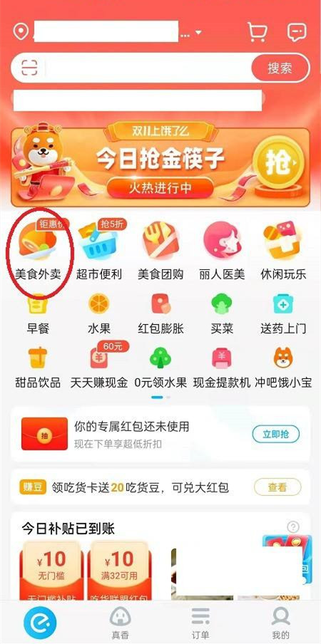 你也打开使用支付宝上的饿了么点单,打开支付宝,点击首页饿了么,点击美食外卖下单即可。