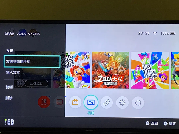 switch照片怎么传到手机1、在首页选中相册,点击A键确定,选择发送到智能手机。