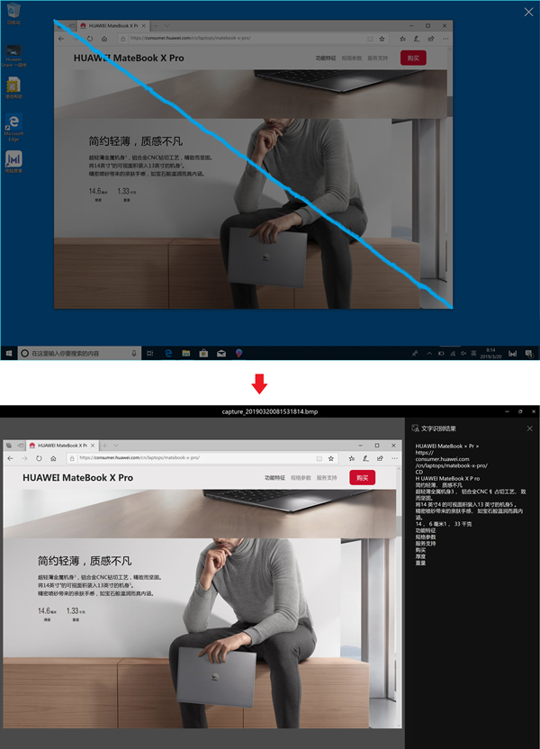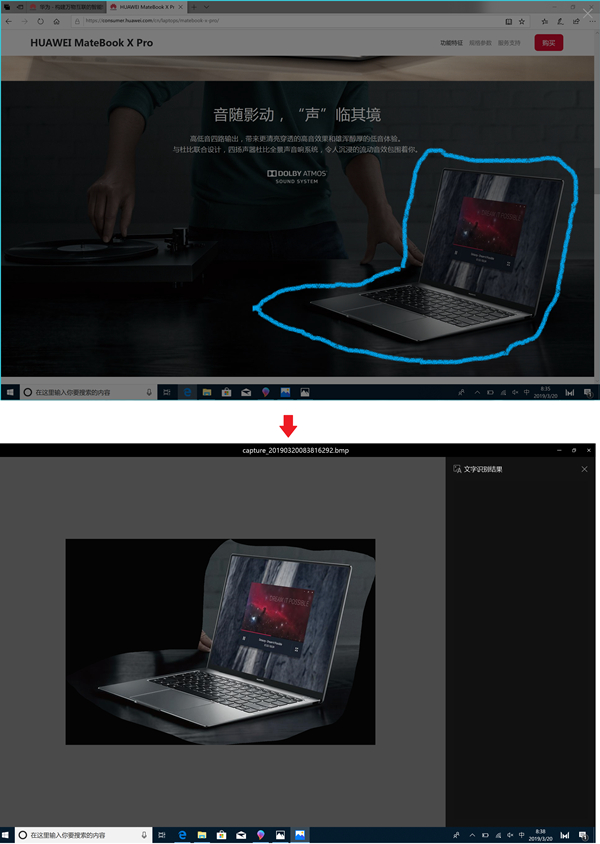 在触摸屏上使用三个手指向下滑动>进入截图状态>按照提示操作即可,截取成功计算机会自动识别图片中文字并显示在图片右侧。