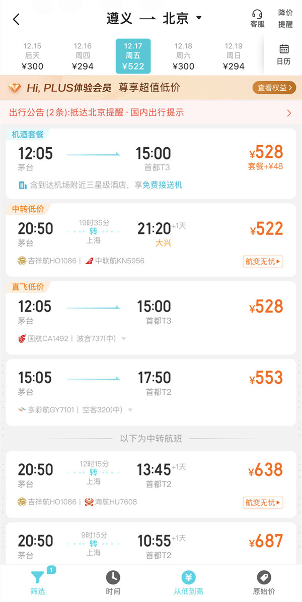 2、输入出发地、目的地、出发日期等信息后点击【搜索】即可。