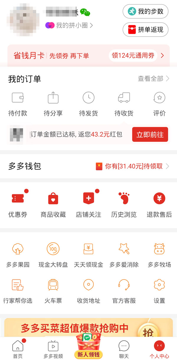 拼多多的个人积分在哪?拼多多没有个人积分功能,在拼多多上进行购物没有积分,也无法进行积分查看。