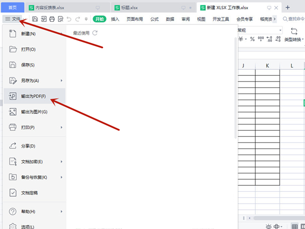 1、打开excel文件,点击三横文件,点击输出为PDF。