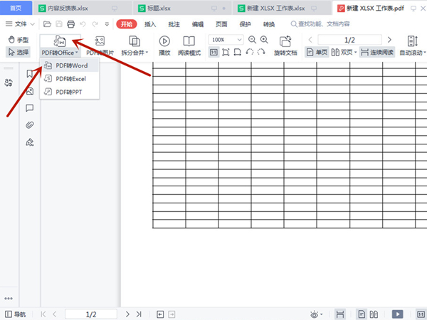 3、打开输出的pdf文件后,点击PDF赚office里的PDF转word即可。