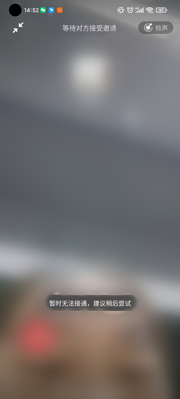 手机关机微信视频能打通吗手机关机微信视频能打通,再拨打一定时间会在屏幕显示“暂时无法接通,建议稍后尝试”的字样。