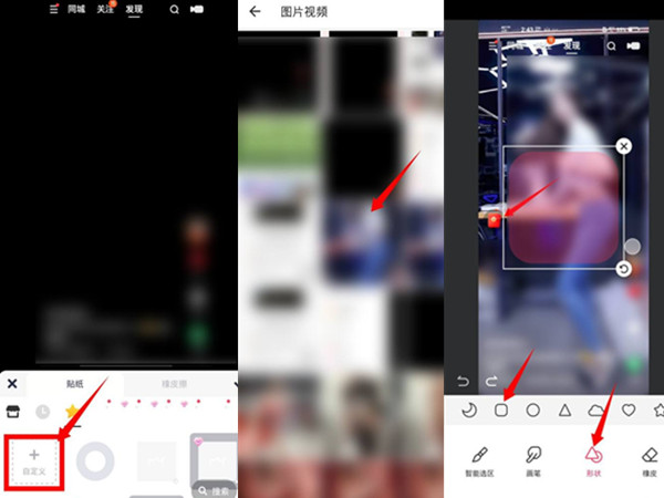 3、点击自定义体贴纸选项,点击选择第二张图片,点击形状工具。