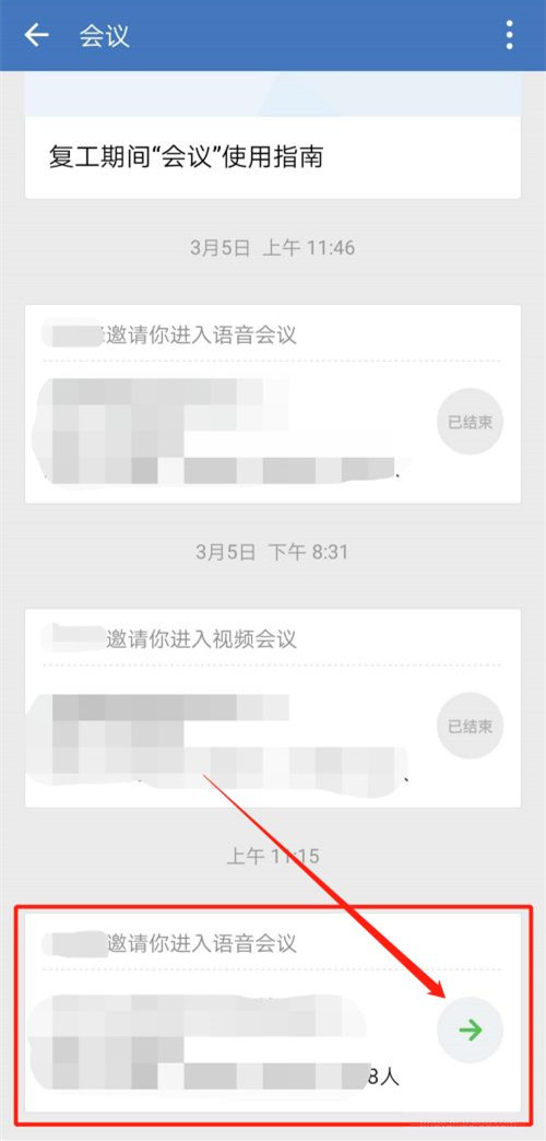 2、点击需要进入的会议房间即可加入会议。