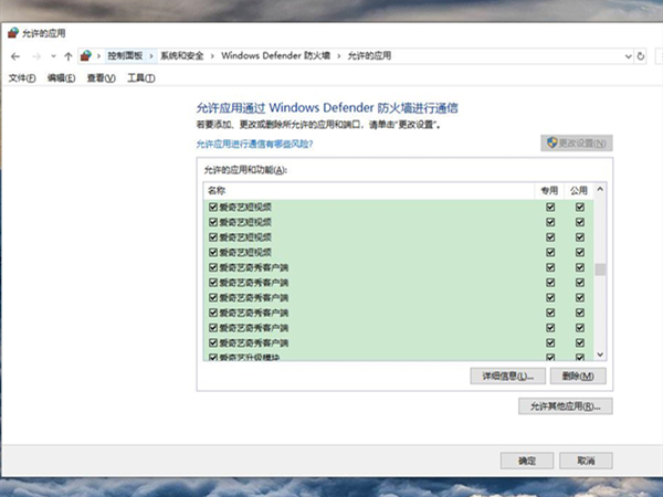 4、点击允许应用通过Windows防火墙,勾选应用前面的框,点击应用即可。