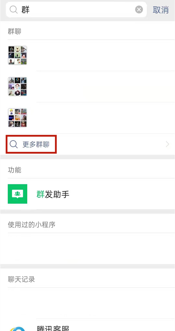2、在群聊下面找到更多群聊,点击即可查看自己加入的群聊。