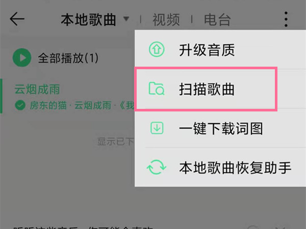 2、点击右上角的三点图标,点击扫描歌曲即可。