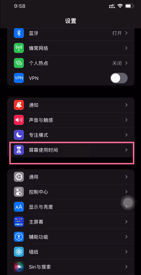 1、在手机设置菜单中点击【屏幕使用时间】。