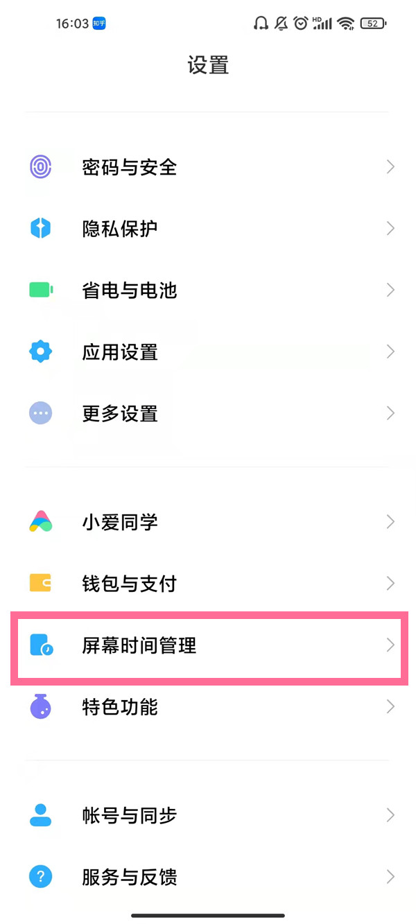 1、在手机设置菜单中点击【屏幕时间管理】。