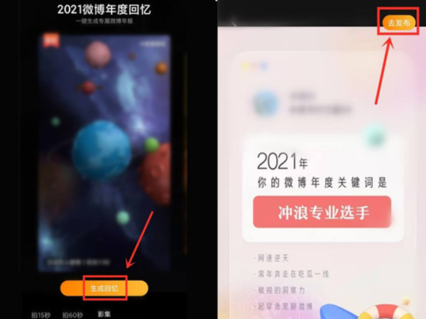 2、点击【生成回忆】,看完微博年度回忆后,点击右上角【去发布】即可。