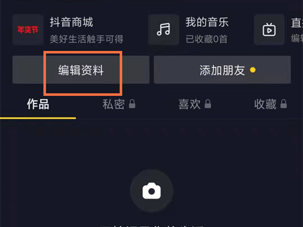 1、打开抖音app,在我的页面点击编辑资料选项。