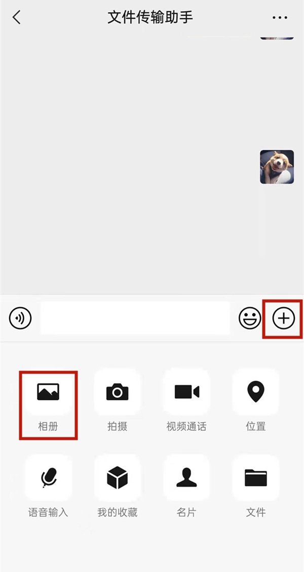1、打开一个聊天窗口,点击加号图标里的相册。