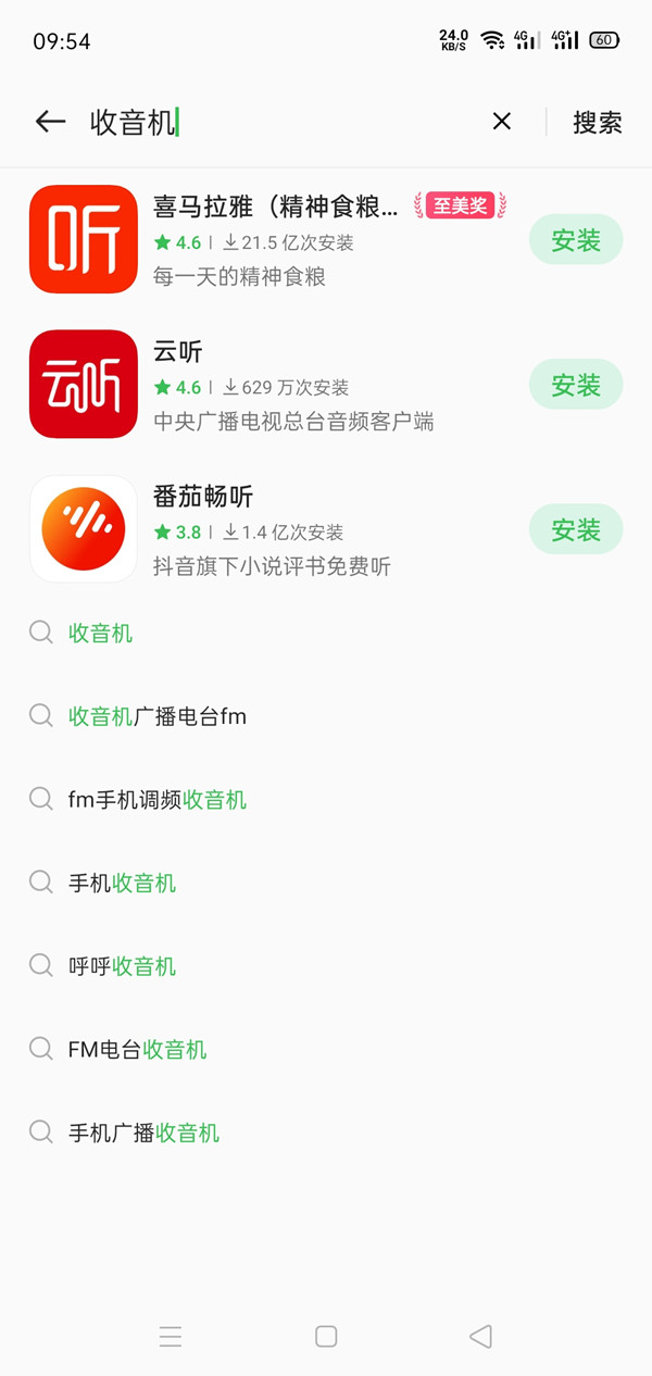 2、在搜索框中输入“收音机”下载想要使用的应用即可。