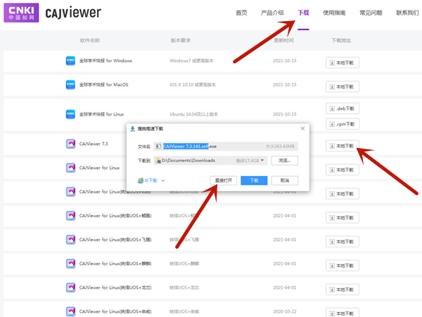 2、在下载里找到CAJViewer,点击立即下载后,点击直接打开。