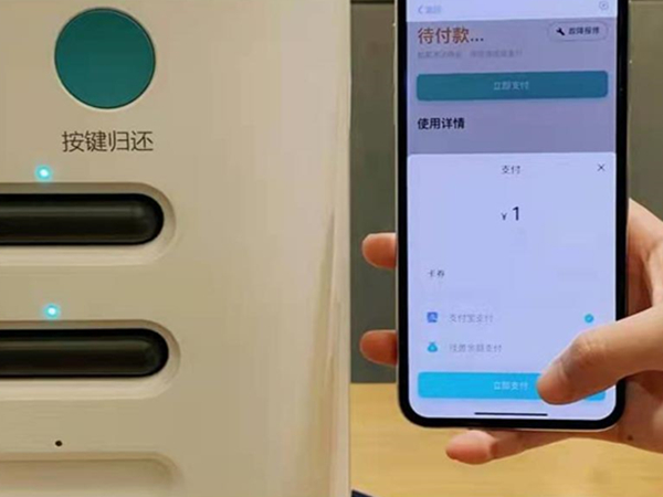 2、将充电宝插入卡槽,确认充电宝锁住后即完成归还,再打开客户端支付租金即可。