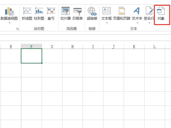 1、选中单元格后,在“插入”选项卡上的“文本”组中,点击【对象】。