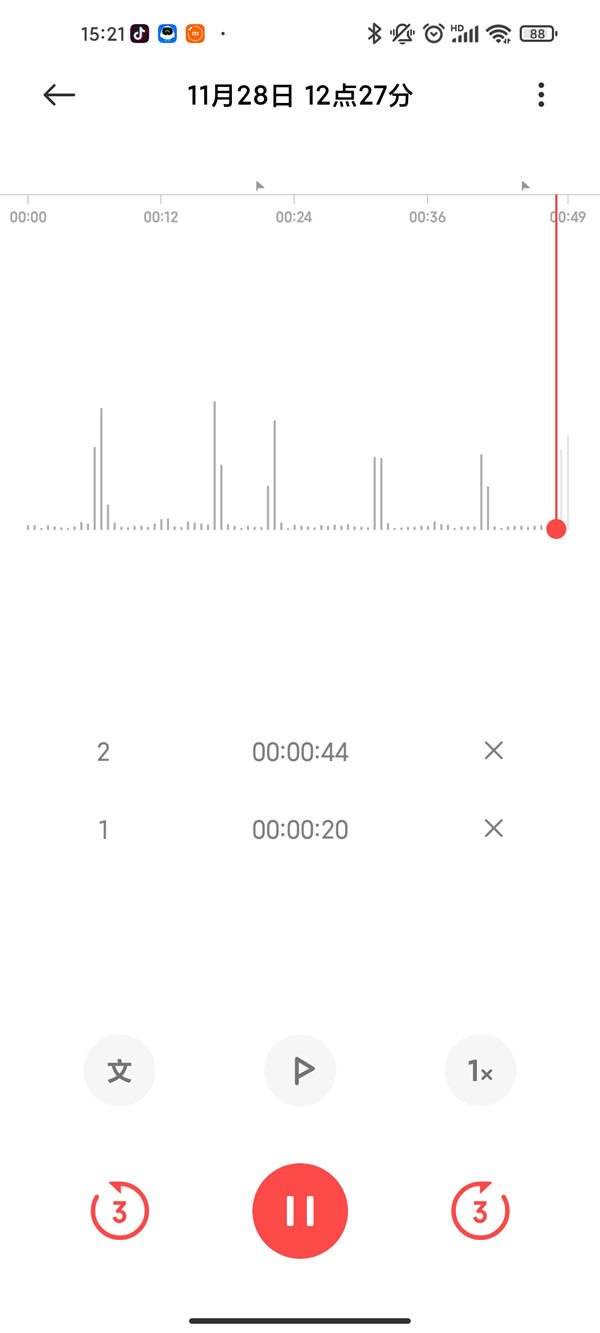 如果只需要在录音中选择一段内容,可以通过标记的方式进行截取,如果是只想保留某一段录音,只能借助第三方音频编辑软件进行剪切。标记设置方法如下: