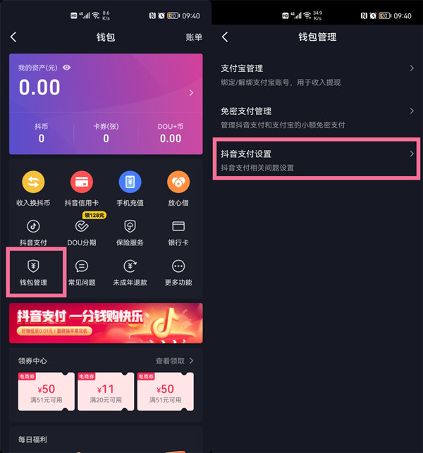 抖音有电商业务,我们在抖音商城购买商品后可以使用支付宝、微信支付,也可以使用抖音钱包绑定的银行卡支付。那抖音的支付密码在哪里修改?