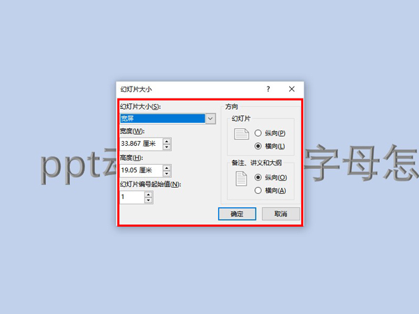 3、根据需要设置幻灯片方向、大小以及高宽即可。