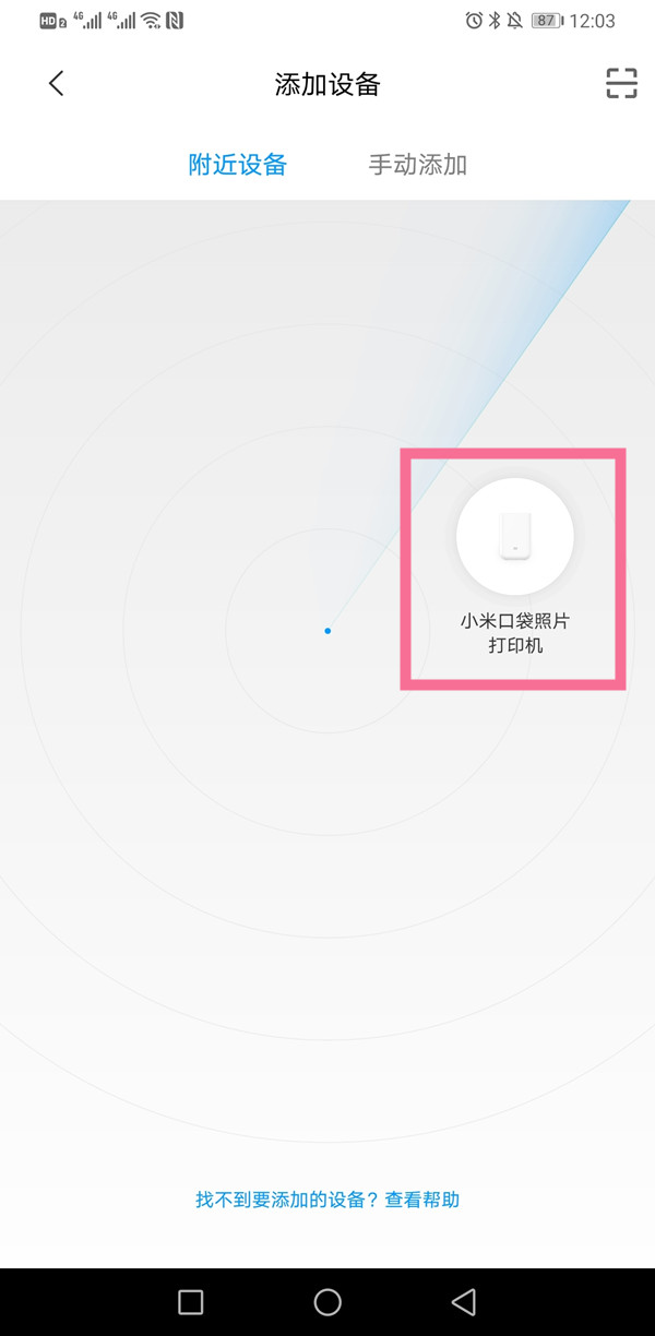 2、打开米家APP,点击右上角 + ,等待扫描到设备,点击打印机,短按打印机电源键完成连接即可。