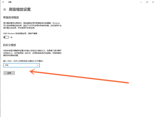 3、在自定义缩放选项中填入300,点击应用即可。