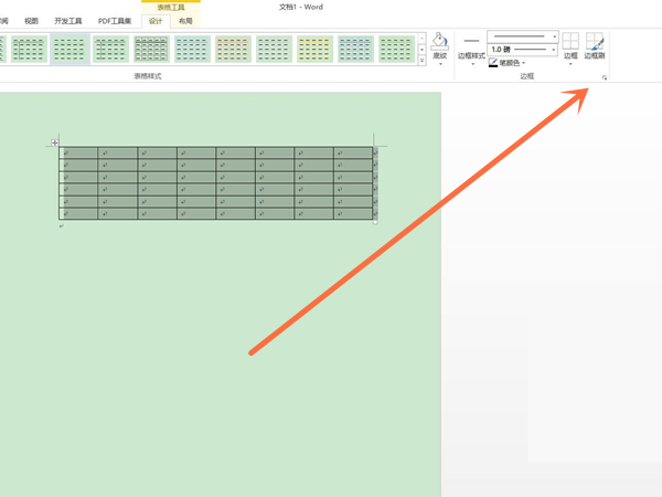 1、打开word文档,选择表格,在设计选项下点击边框右侧展图标。