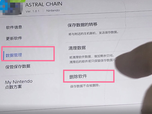 2、按下右手柄中的【+】键,点击数据管理,点击删除软件,并确认删除即可。