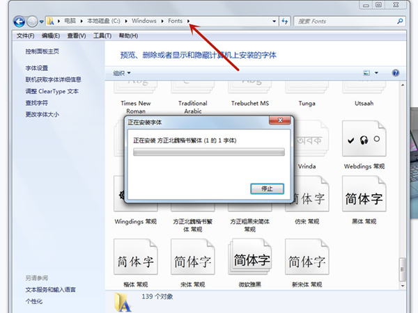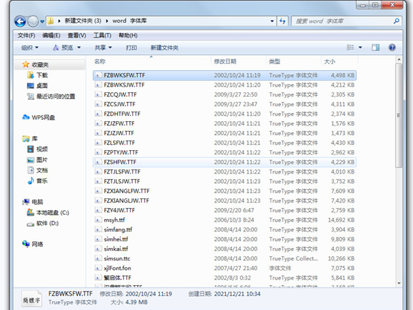 3、将字体文件粘贴在C/Windows/Fonts文件夹就可以在word里看到安装的字体了。