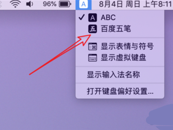 1、打开苹果电脑,在顶部菜单栏中将输入法切换成中文输入法。