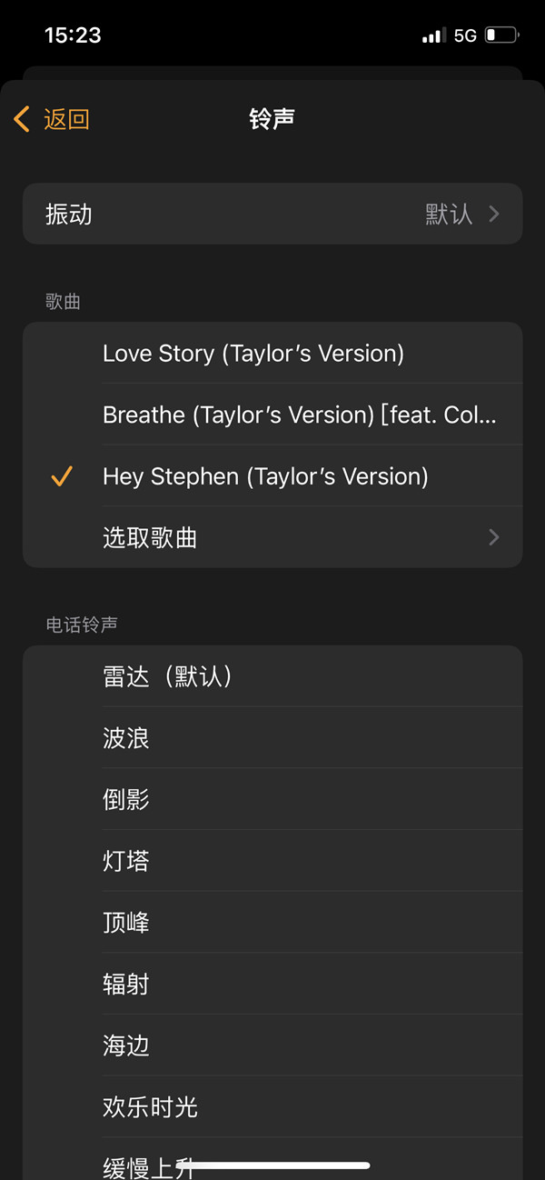 3、在Apple music资料库里选择喜欢的音乐铃声即可。