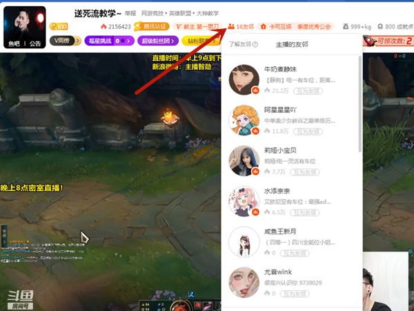 2、打开直播界面即可在友邻图标里查看到主播的友邻。