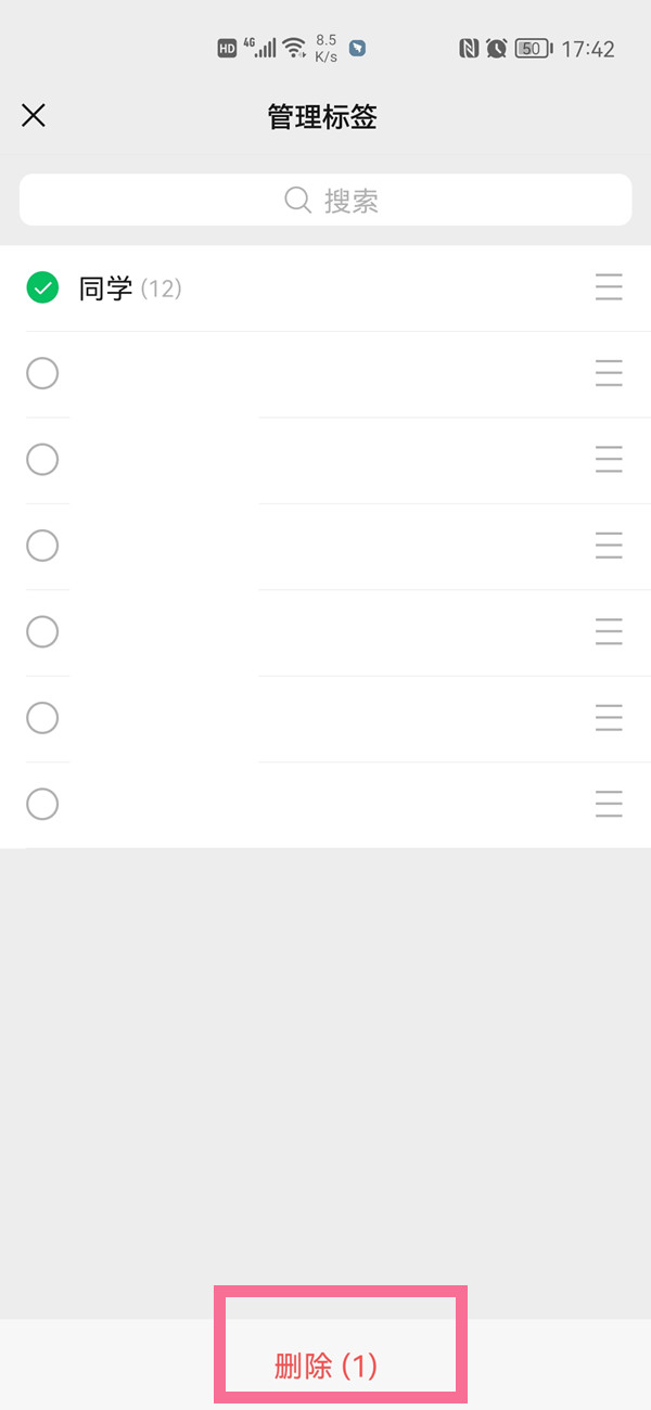 3、勾选需要删除的标签,点击底部【删除】即可。