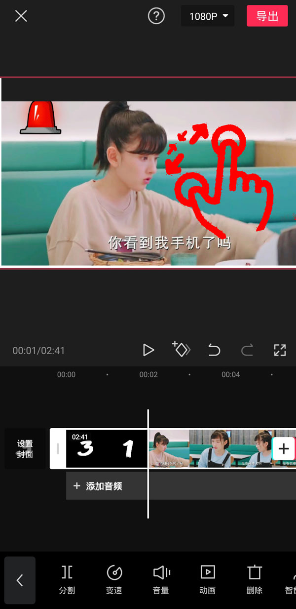 3、双指同时滑动点击视频画面即可裁剪画面大小,点击导出即可。