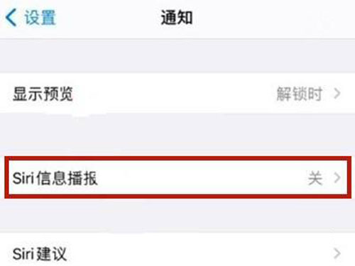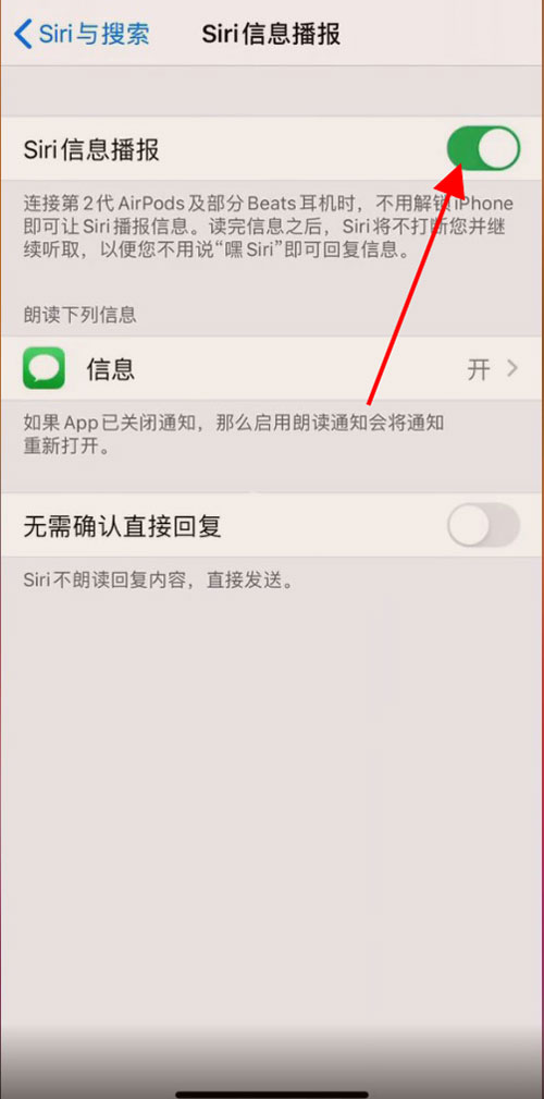 3、关闭【Siri信息播报】右侧开关即可关闭自动读信息。