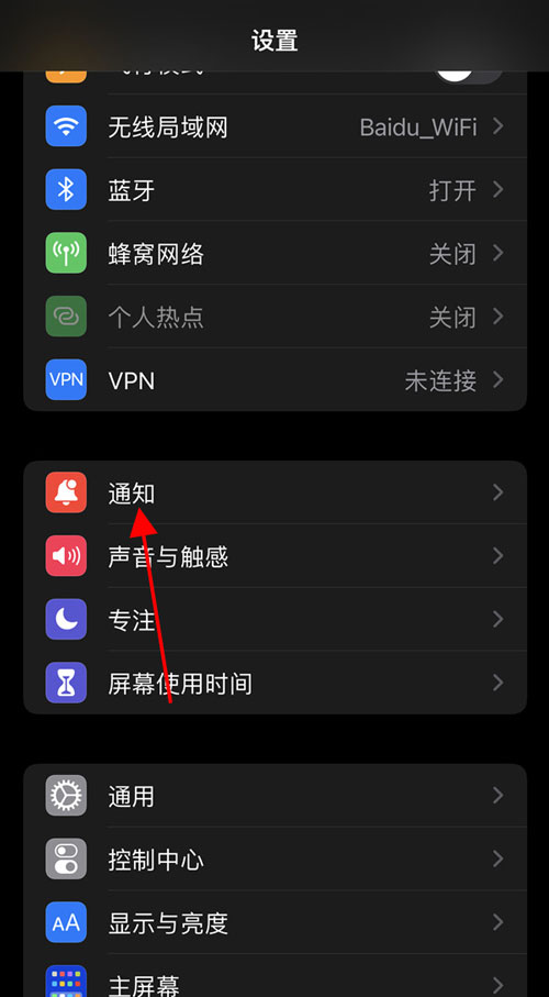 1、打开手机设置,点击【通知】。