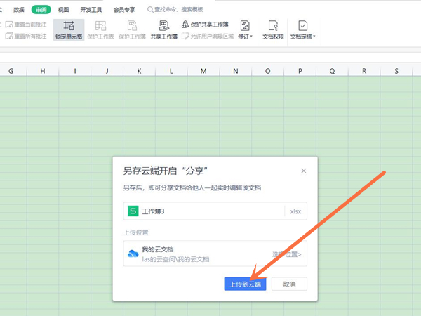 3、再点击左上角的文件,选择分享,点击上传到云端。