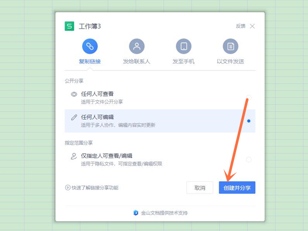 4、点击创建并分享,再复制链接分享给别人即可。