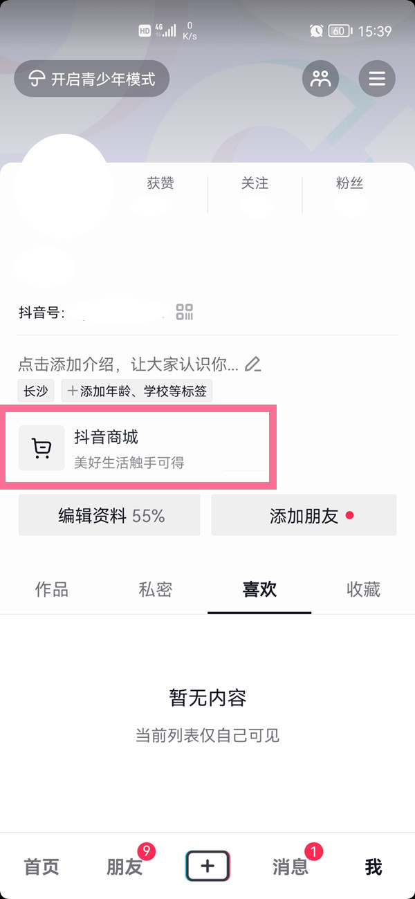 1、打开抖音,在“我”界面点击【抖音商城】。