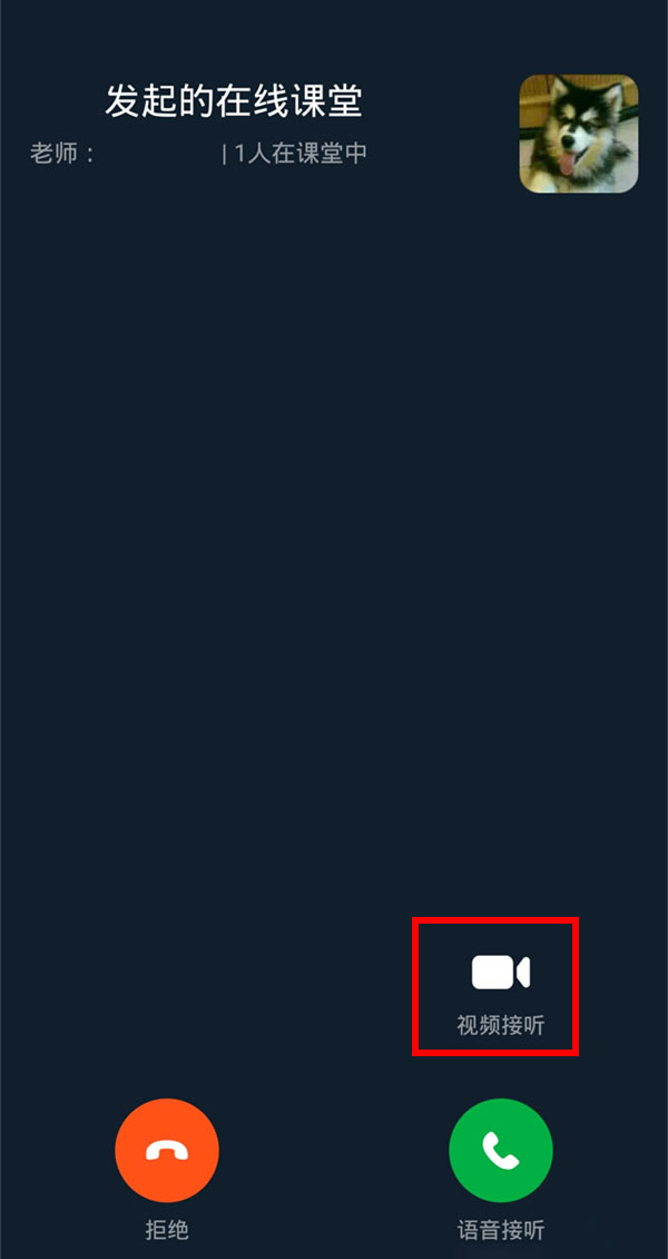 1、学生在接到邀请后,点击视频接听加入课堂。