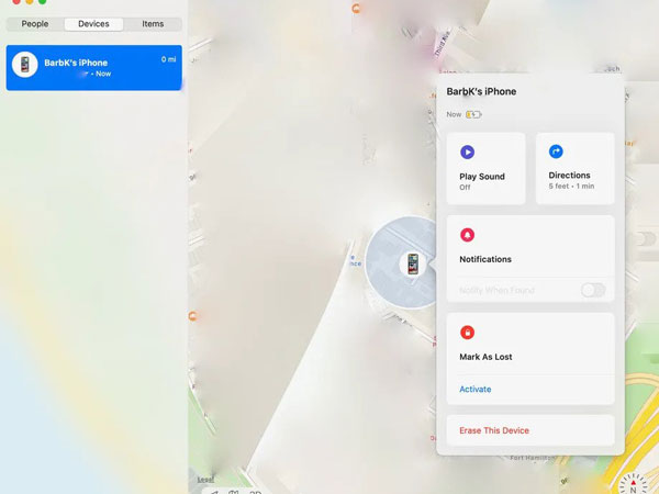 2、在设备页点击丢失手机名称,进入后即可查看手机所在位置。