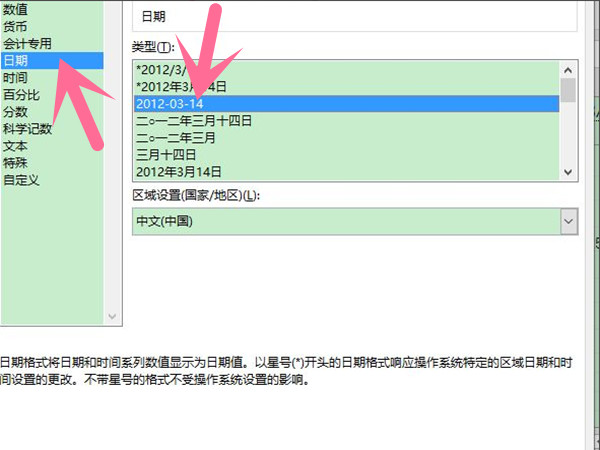 2、点击日期,类型中选择显示为yyyy-mm-dd格式的日期类型,点击确定即可。